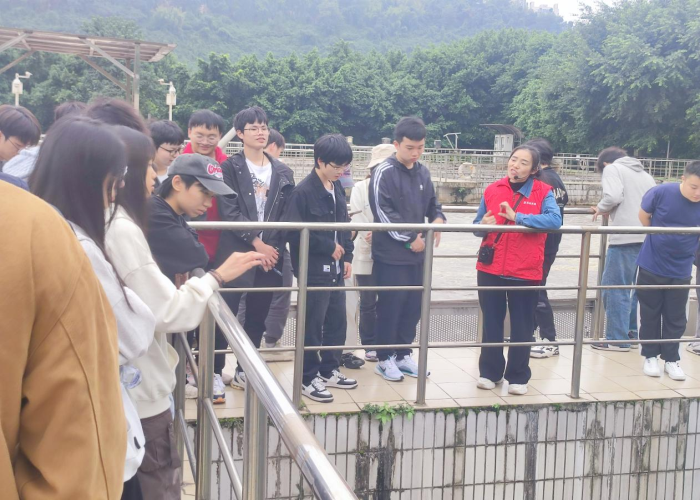 培訓(xùn)中,惠泉公司三名管理人員分別帶隊(duì),組織學(xué)生參觀了入水口、粗格柵、細(xì)格柵、沉砂池、生化池、脫水車(chē)間、濾池、出水口等污水處理設(shè)施,詳細(xì)講解污水處理工藝。學(xué)生們一邊認(rèn)真聆聽(tīng)講解,一邊仔細(xì)觀察污水處理的各個(gè)環(huán)節(jié),不時(shí)提出問(wèn)題與講解員進(jìn)行交流。通過(guò)參觀與互動(dòng),學(xué)生對(duì)污水處理的每個(gè)環(huán)節(jié)有了深入了解,親眼見(jiàn)證了“渾流變清泉”的污水處理奇跡。