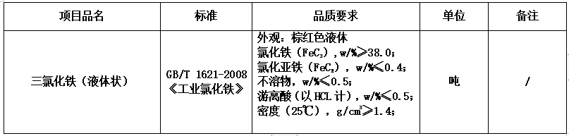 2.1 項(xiàng)目名稱:達(dá)州市惠泉污水處理有限公司2020年度三氯化鐵采購項(xiàng)目